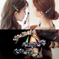 3. 将另一股头发也穿过发夹,注意要和第一股头发交叉。